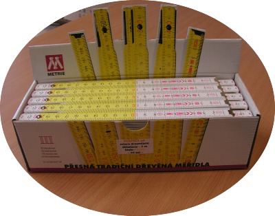 Miary drewniane składane - III klasa dokładności ( z atestem UE ) wykonane z selekcjonowanego drewna bukowego o grubości 3, 0 mm, nacięcia i końcówki listewek bardzo dokładnie malowane, całość dwukrotnie lakierowana, metalowe okucia i nity pokryte warstwą zabezpieczającą przed korozją.